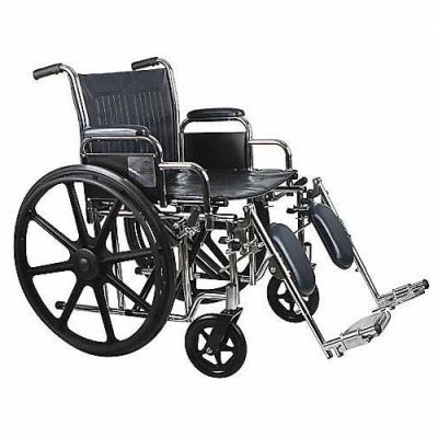 Silla de ruedas con soporte para piernas con soporte trasero , regulables , elevables y desmontables , especialmente diseñada para usuarios con problemas en las piernas y que necesita mantenerlas en posición horizontal.